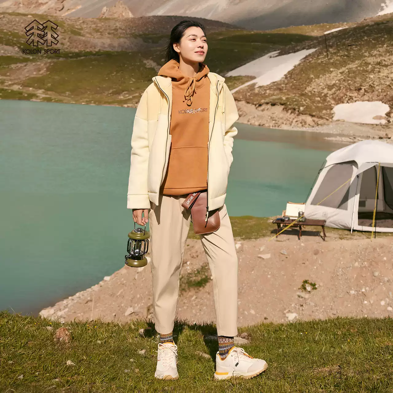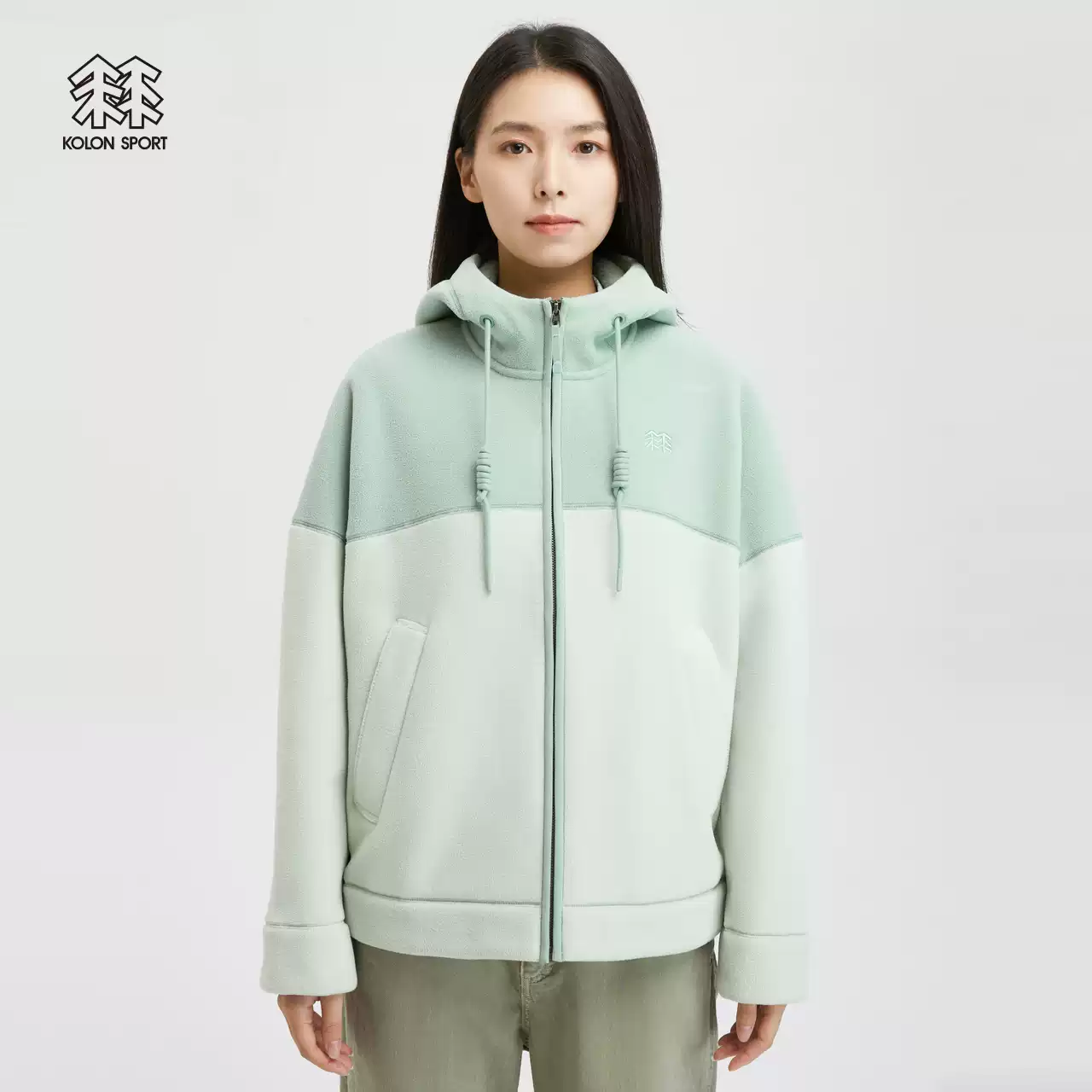 KOLONSPORT可隆抓绒夹克女户外运动抓绒衣徒步露营羊羔绒连帽外套