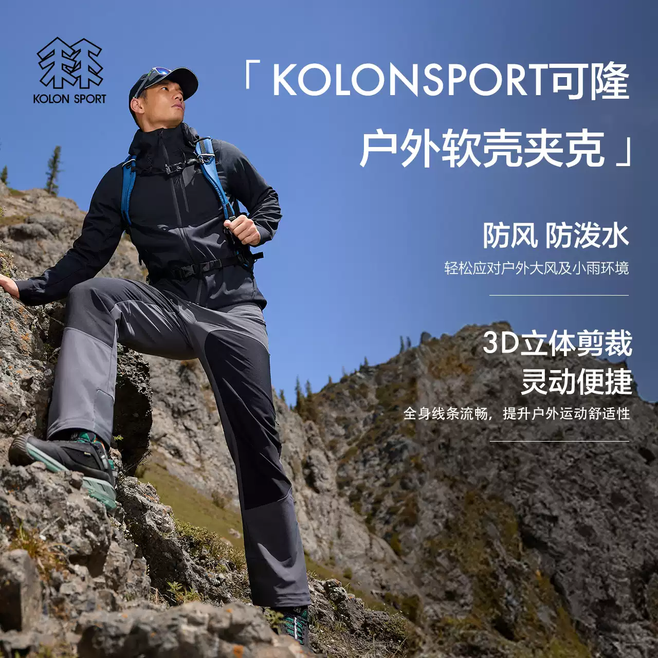 KOLON SPORT可隆软壳夹克防泼水上衣户外休闲衣男女防风徒步外套